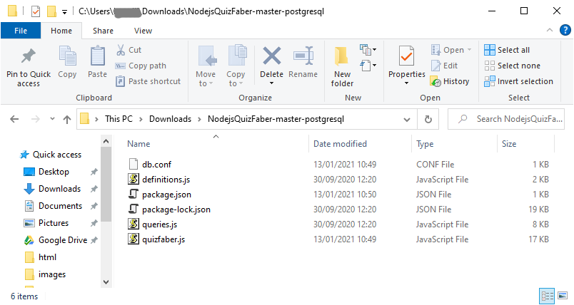 8) Télécharger les codes source du serveur quizfaber de ce lien, déballez la fermeture éclair afin que vous les avez dans un dossier sur place.