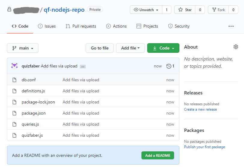 Quelle que soit la plate-forme cloud que vous choisissez, linking au référentiel GitHub sera toujours nécessaire pour le « déploiement » à avoir lieu, c’est-à-dire la création de l’application Web qui n’est rien de plus que le serveur auquel les quiz produits par QuizFaber se connectera pour enregistrer les résultats.