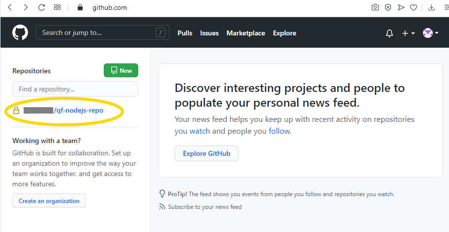 10) Dernière étape : revenez à GitHub, faites "Sign in" si nécessaire, sinon vous entrez déjà votre page référentiel. Cliquez sur le nom du référentiel qui a été créé à l’étape précédente: