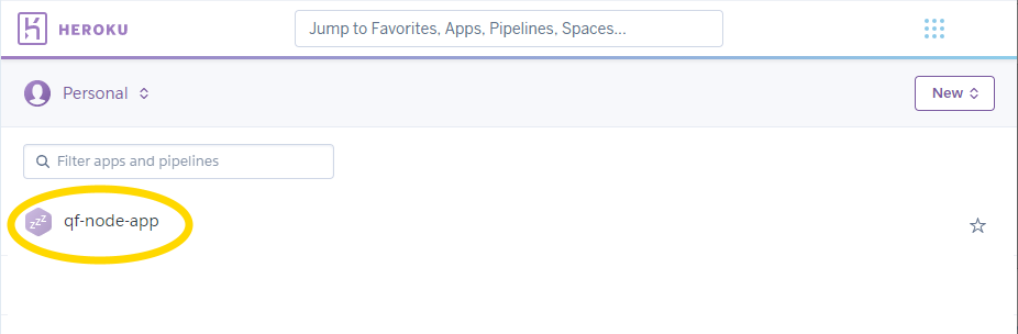 1) Avec votre navigateur préféré, connectez-vous au site : www.heroku.com et cliquez sur le bouton "Login in". Une fois que vous entrez vos informations d’identification, vous entrez votre "dashboard" où vous verrez l’application web créée à l’étape précédente. Cliquez sur le nom de l’application: