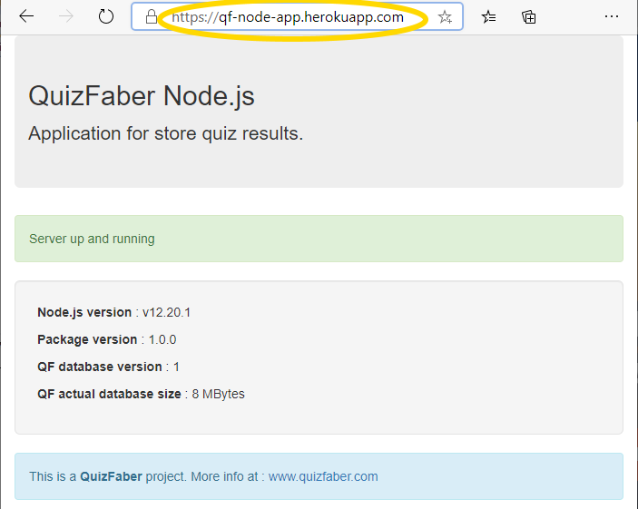 La prochaine étape consiste à spécifier dans QuizFaber quelle est l’adresse de l’application créée dans Heroku.