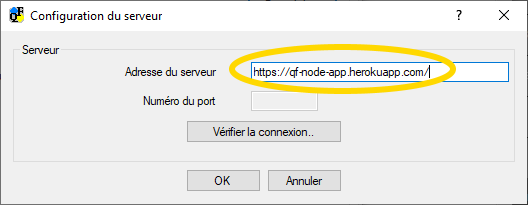 Click "Vérifier la connexion" pour s’assurer que l’adresse est accessible, puis appuyez sur le bouton "OK"