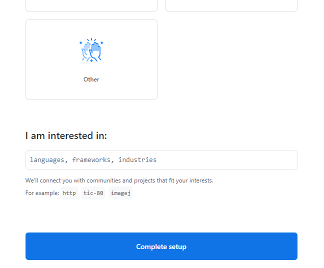 3) Si può evitare di rispondere al sondaggio, scrollando la pagina fino al fondo e premere il pulsante "Complete setup":