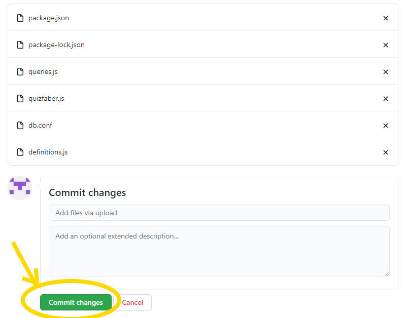 11) Al termine del caricamento, premere il pulsante "Commit changes"