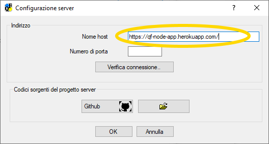 Il passo successivo è specificare in QuizFaber qual'è indirizzo dell'app creata in Heroku.