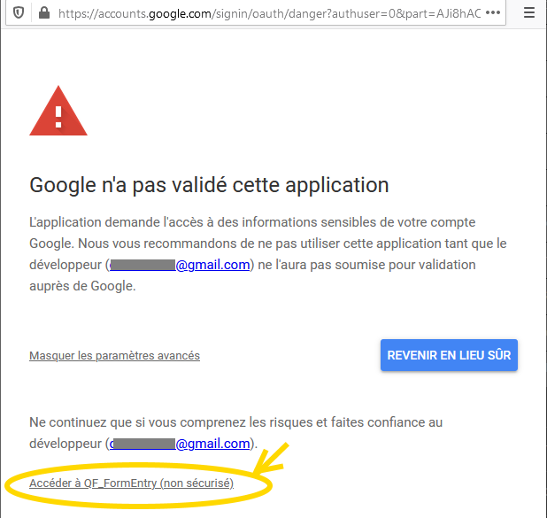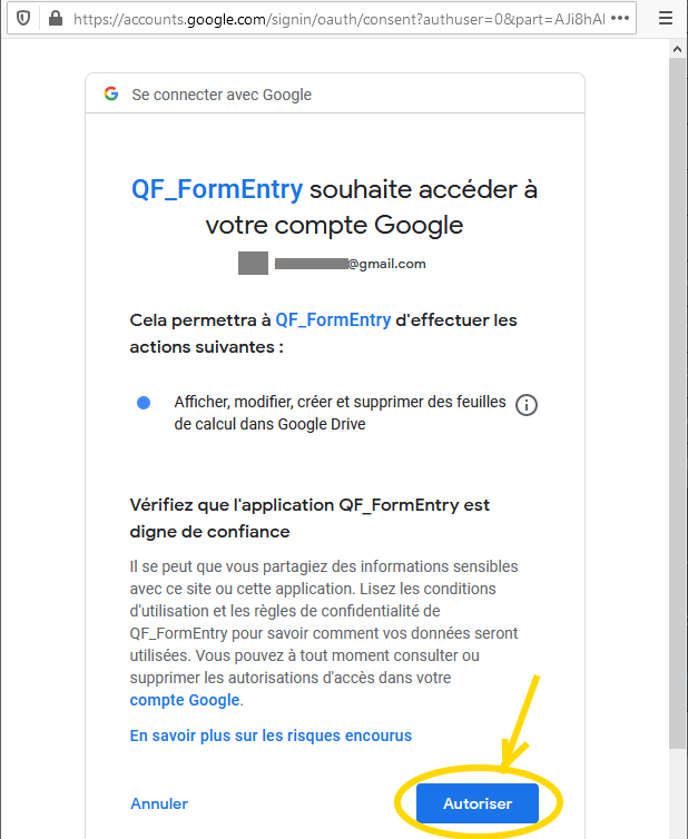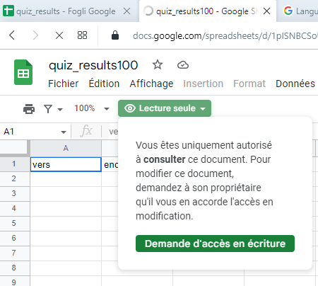 Il n'est pas nécessaire de demander un accès en édition à la feuille "quiz_results" (puisqu'il s'agit d'une feuille partagée dans l'espace Google Drive de QuizFaber), car on pourrait être tenté de le demander de la manière suivante :