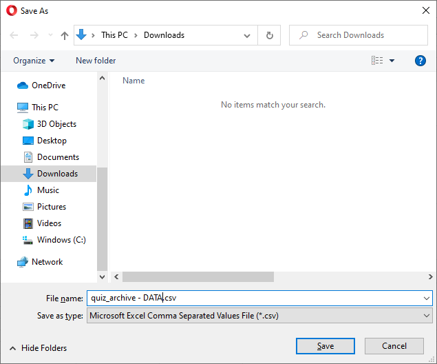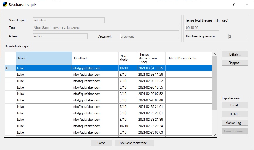 Il est possible d'exporter les résultats du quiz dans les formats suivants: