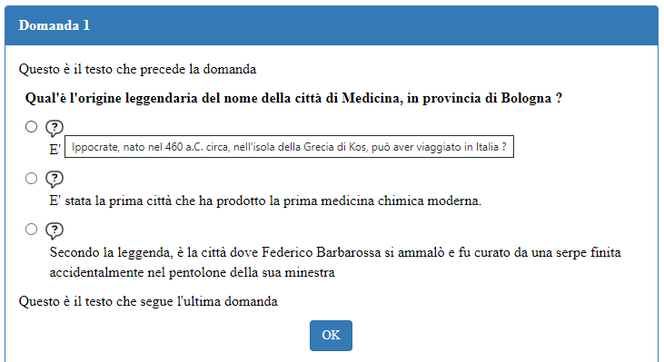 Il testo introduttivo è una breve spiegazione destinata a chi si appresta a rispondere ad un quiz ed appare in testa alla pagina del quiz, precedendo la prima domanda.