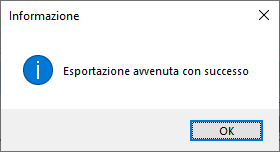 Infine, al termine dell'esportazione, appare una finestra che informa sul risultato dell'operazione: