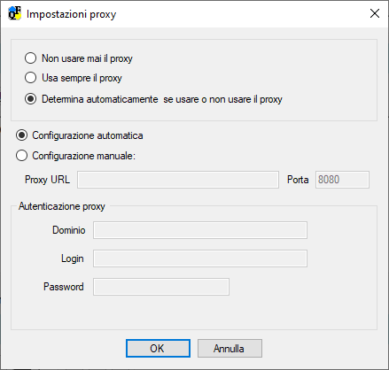 Se si è connessi alla rete con un proxy, è possibile specificare le informazioni del proxy premendo il pulsante "Impostazione proxy".