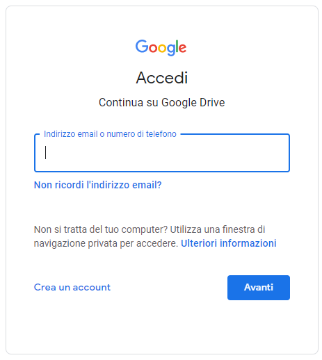 Se non si è già autenticati con lo stesso browser in un altro servizio Google (ad esempio, il servizio di posta elettronica Gmail), verrà chiesto di inserire le proprie credenziali di accesso, le stesse usate con Gmail.