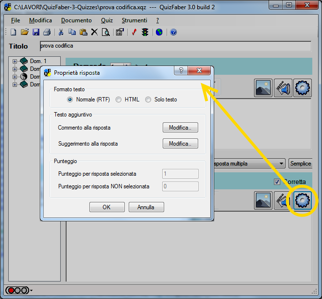 Apparirà una nuova finestra col titolo "Proprietà risposta", come mostra la seguente figura: